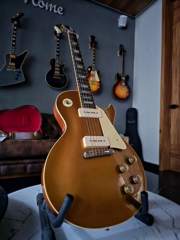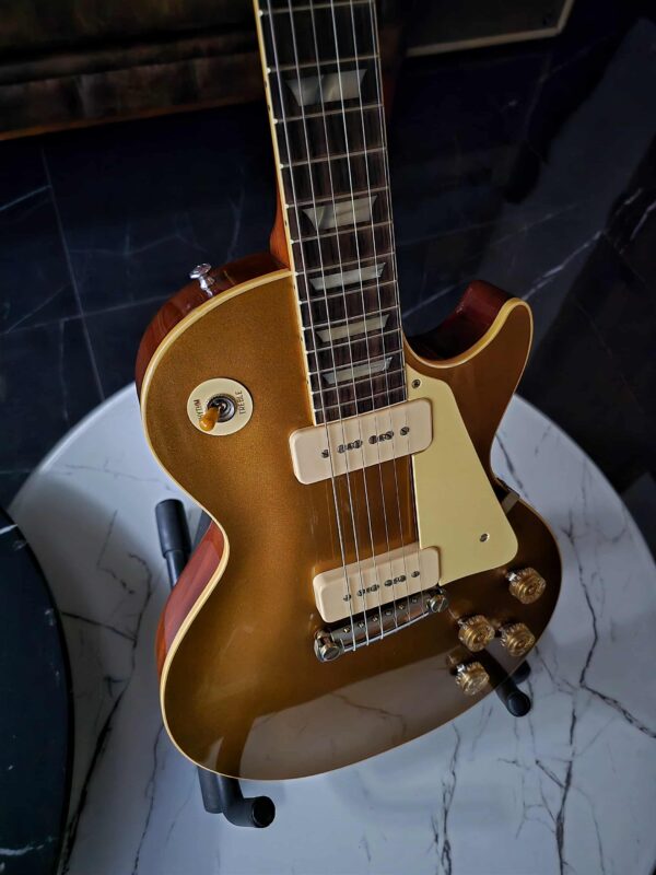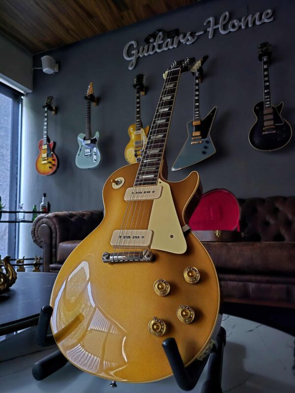 From Freddie King to Jeff Beck, many great pickers have been attracted the unique character of the «wraparound» tailpiece of a 1954 Les Paul Goldtop. Some believe its direct link to the body stud screws maximizes sustain while others believe the wraparound bar creates a distinct tonality and vocal quality. Whatever the case, there is certainly something special about this early year in the Les Paul Model’s history and Gibson Custom Shop created this ’54 Reissue to perfectly recapture the look, feel, and tone of the originals.