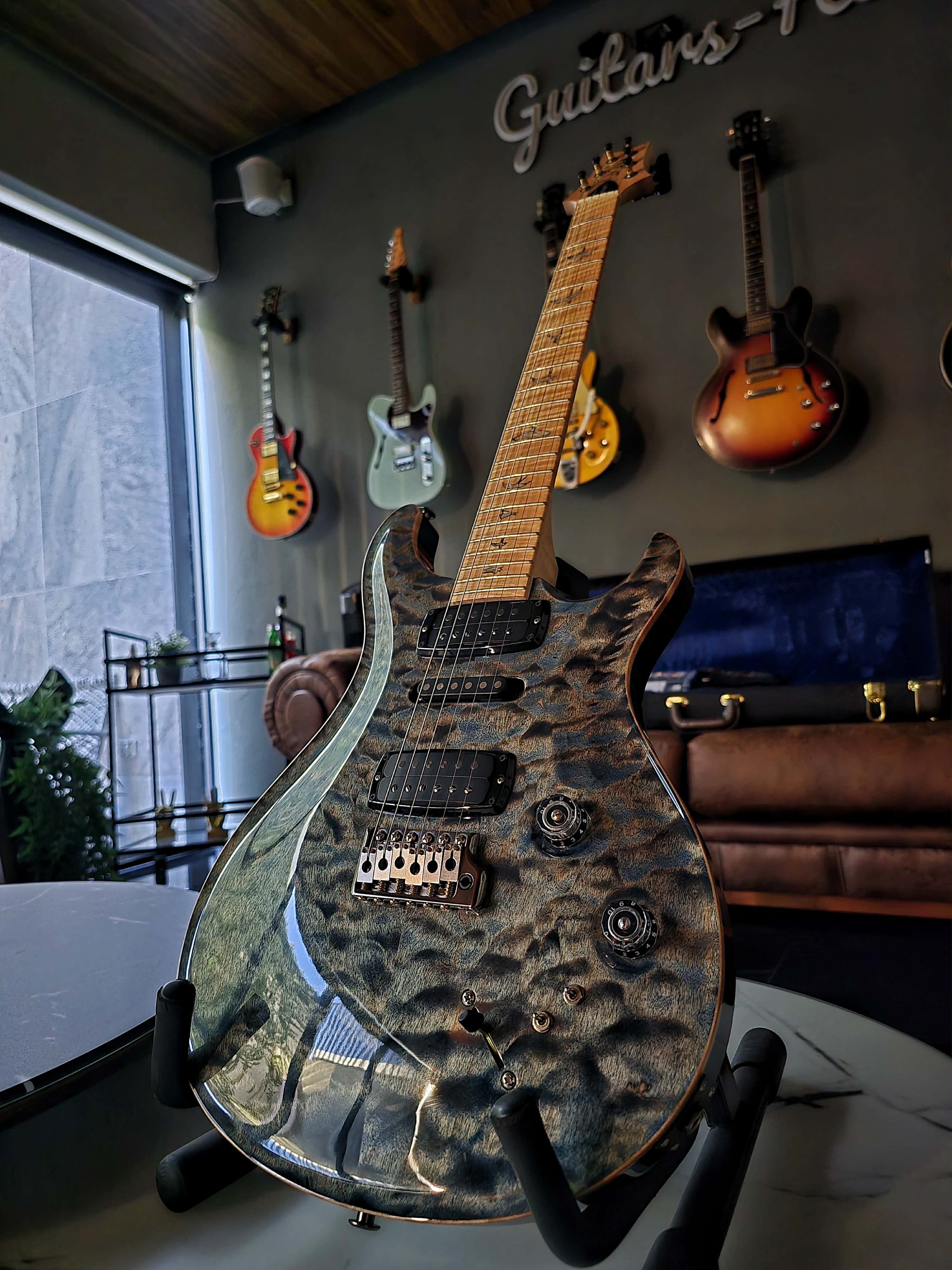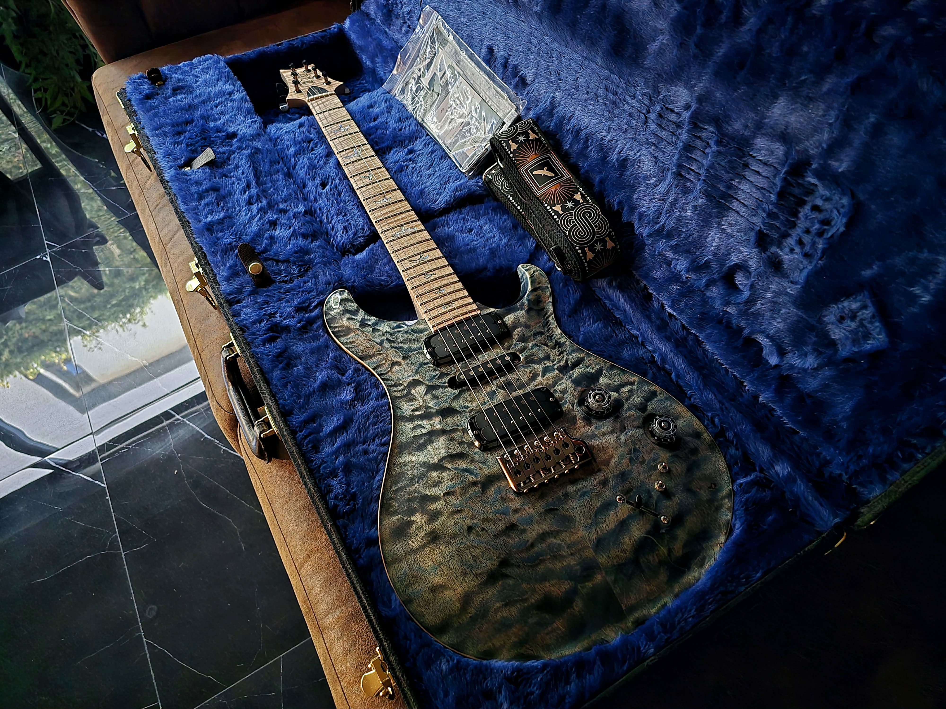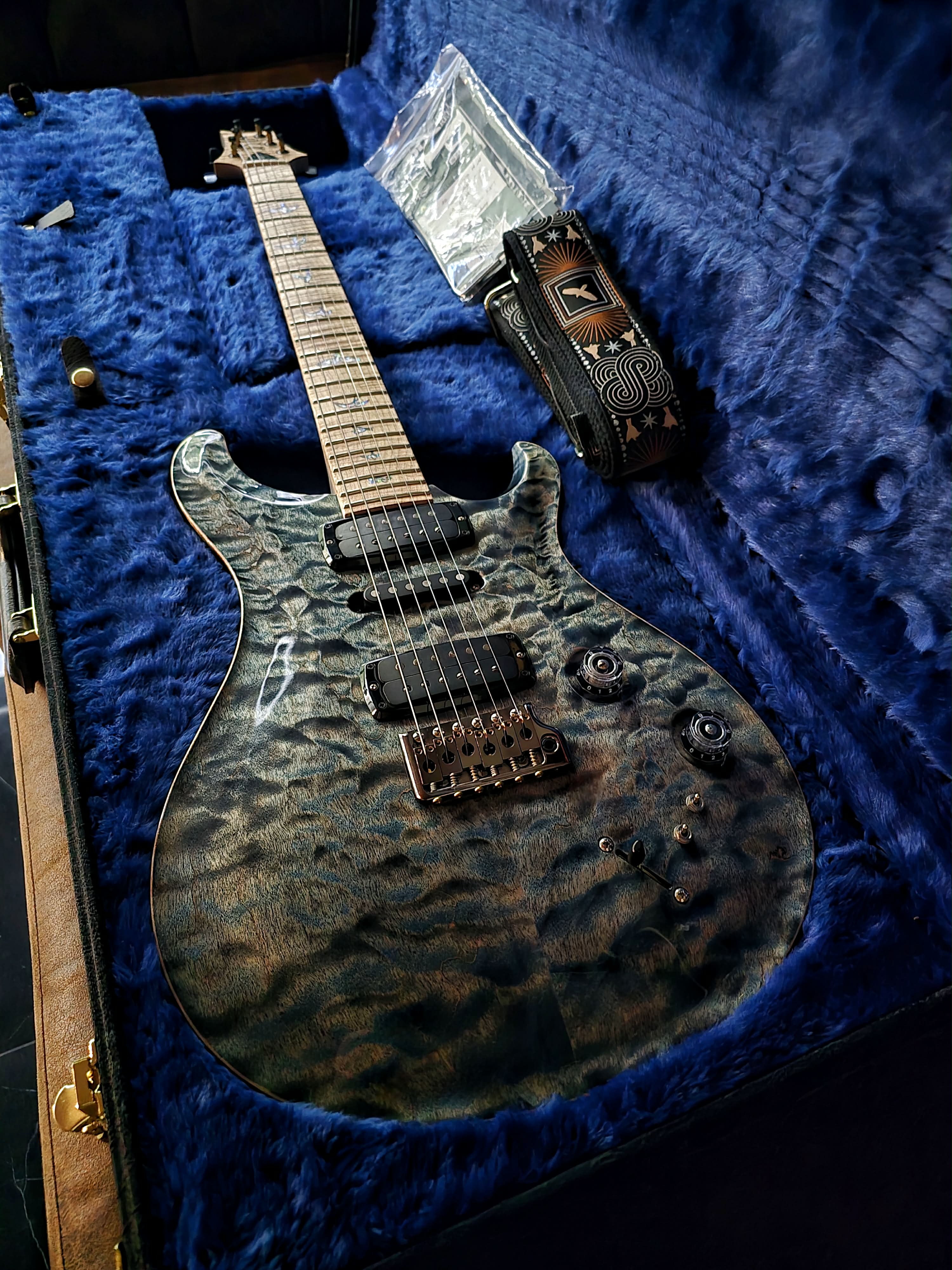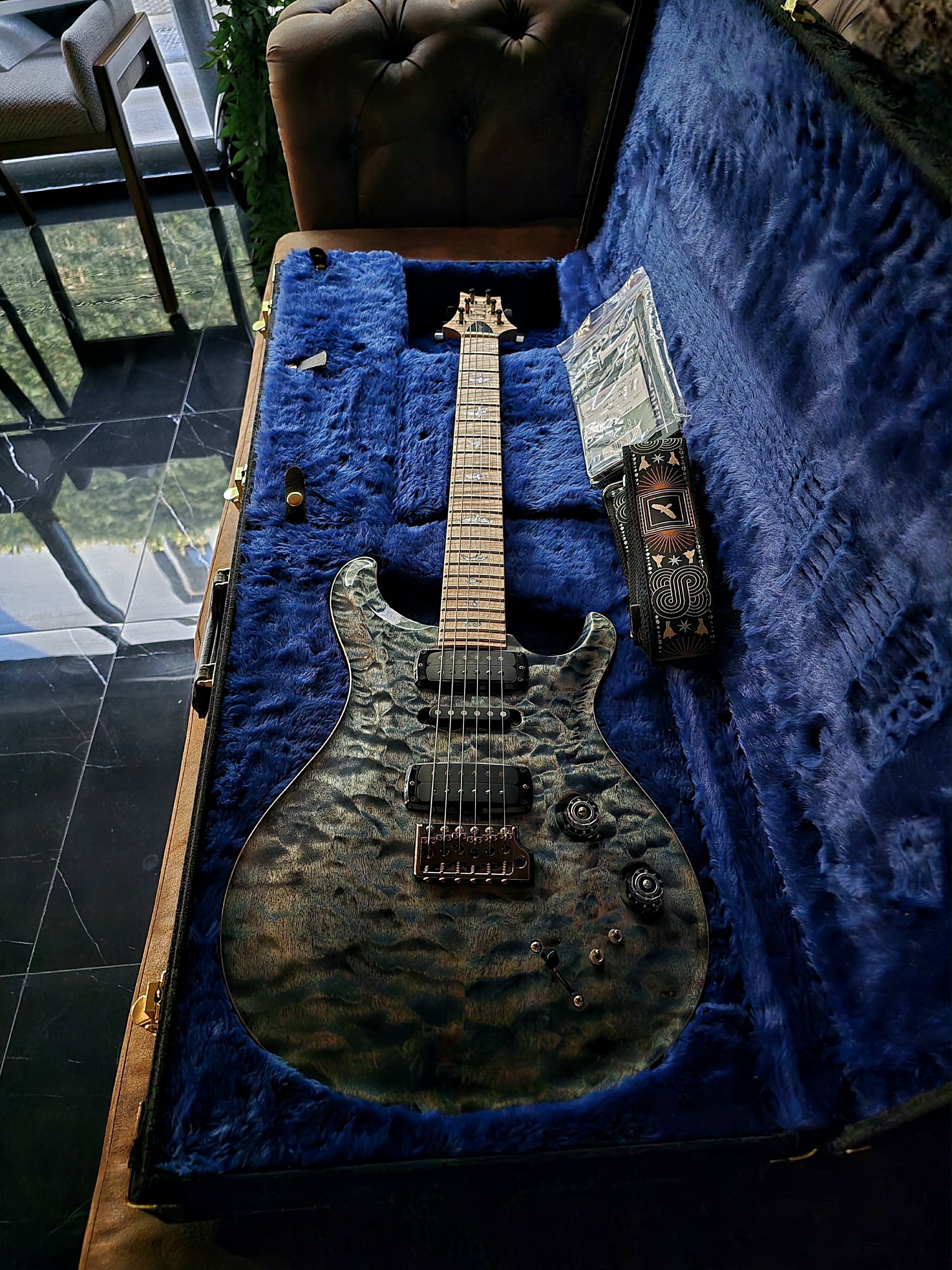 Sé el primero en valorar “PRS Modern Eagle V Wood Library Quilt 10 Top with Flamed Neck and Swamp Ash in Blue Whale 2024”