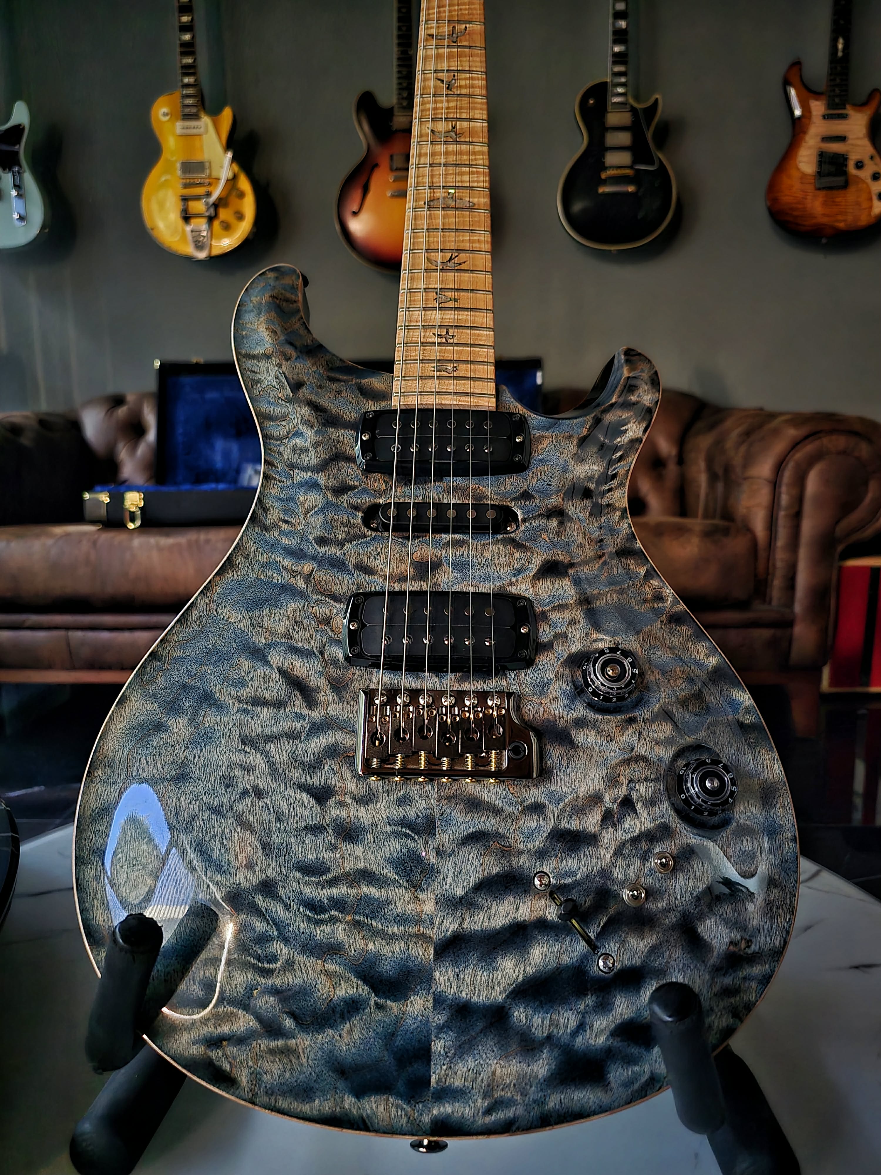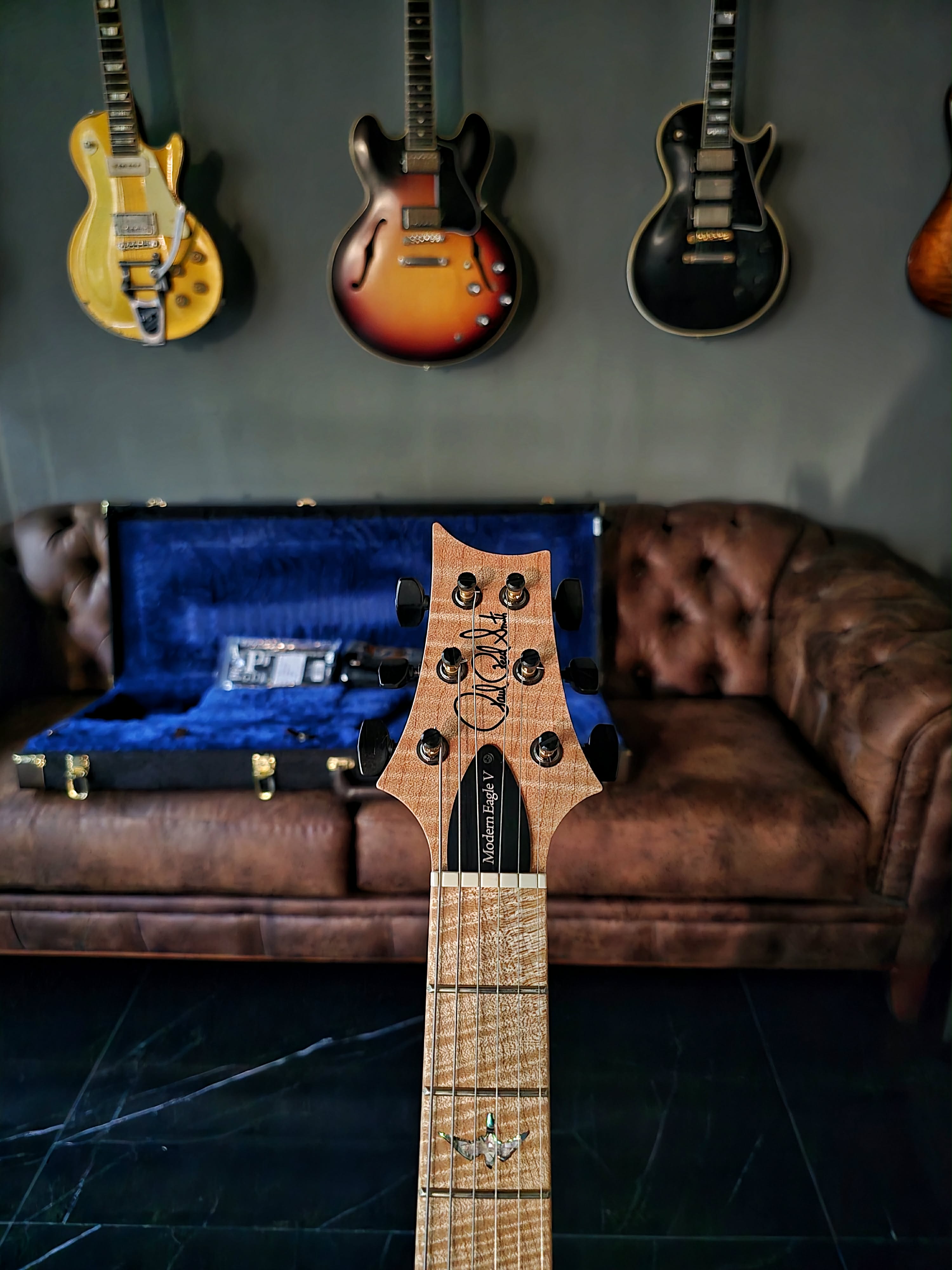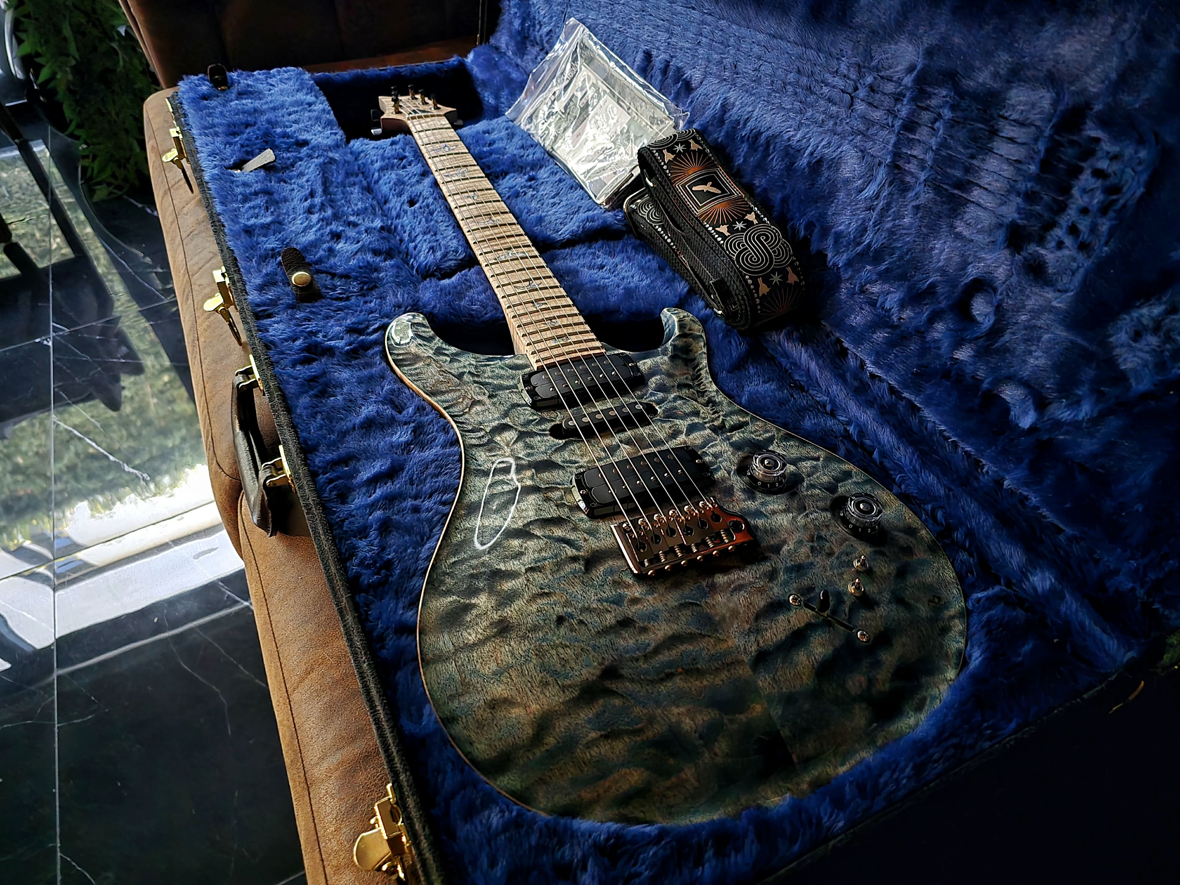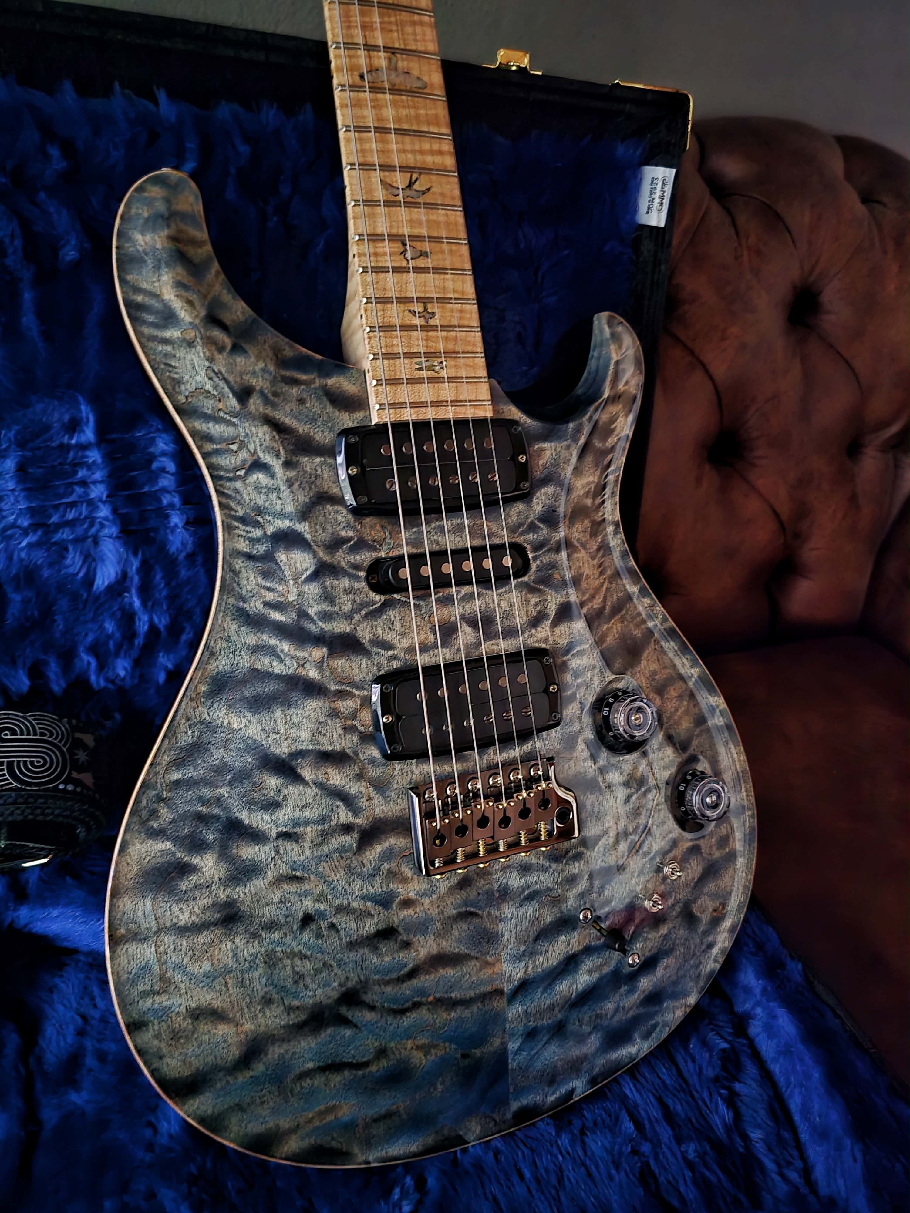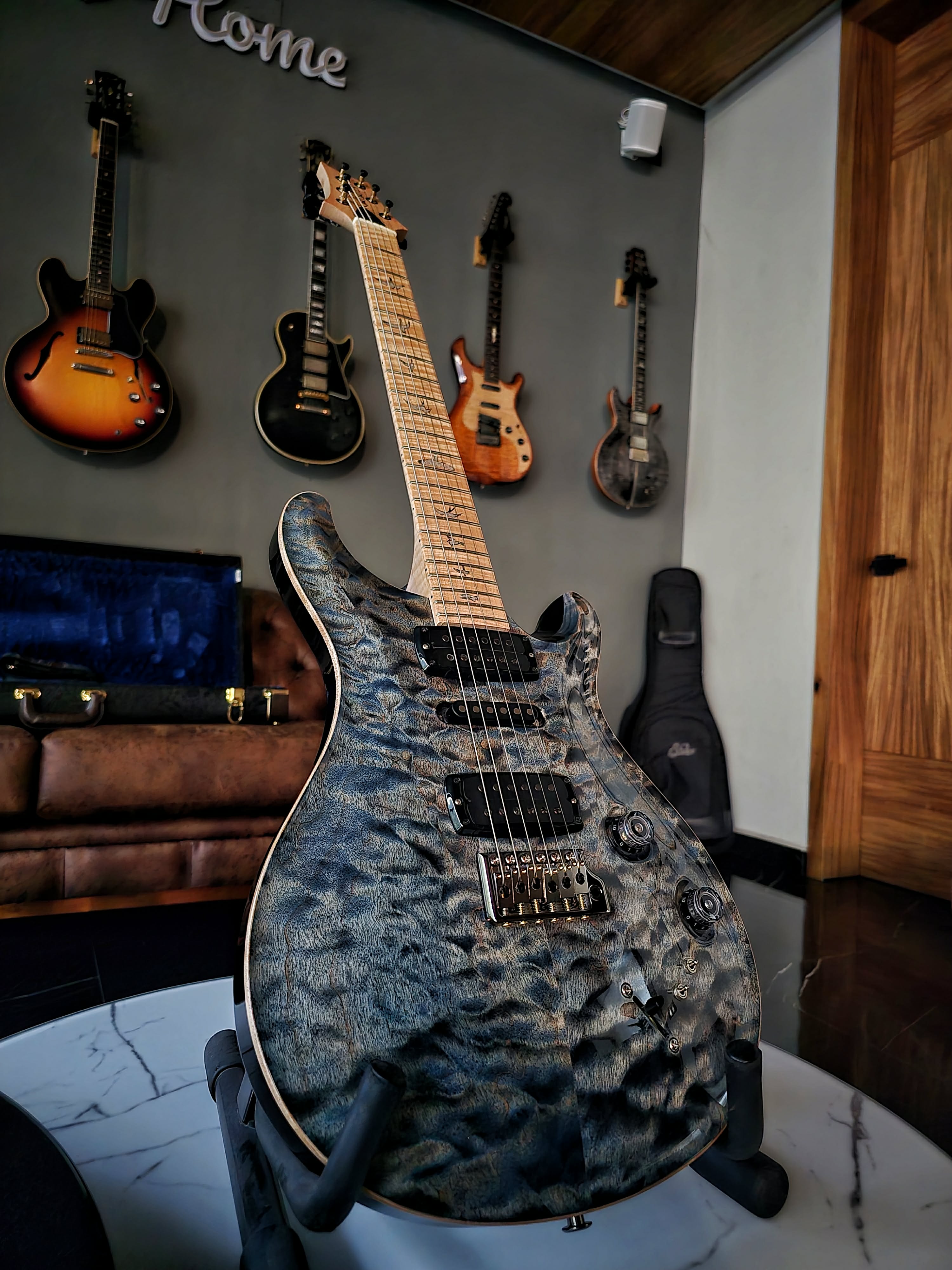 Sé el primero en valorar “PRS Modern Eagle V Wood Library Quilt 10 Top with Flamed Neck and Swamp Ash in Blue Whale 2024”