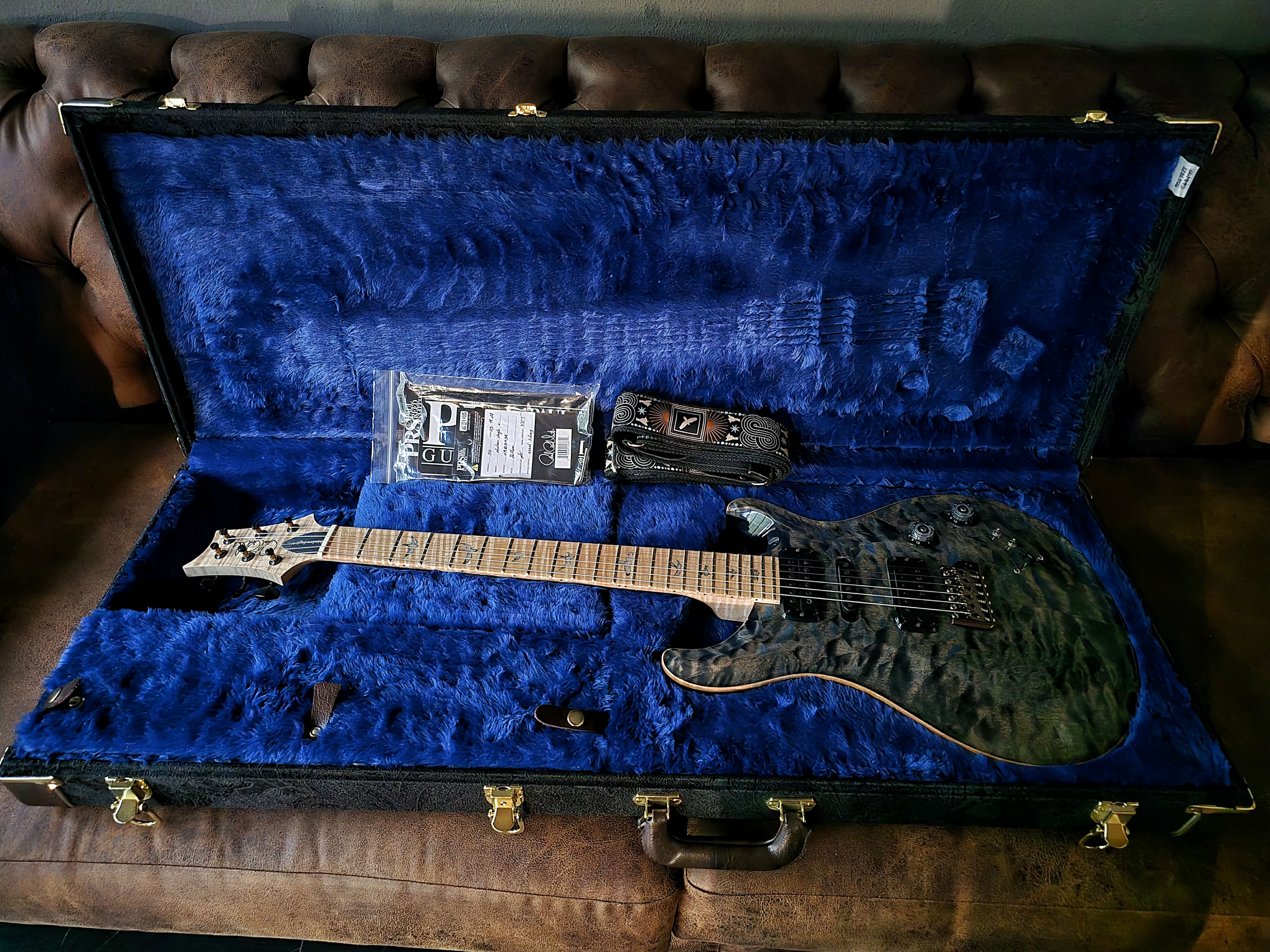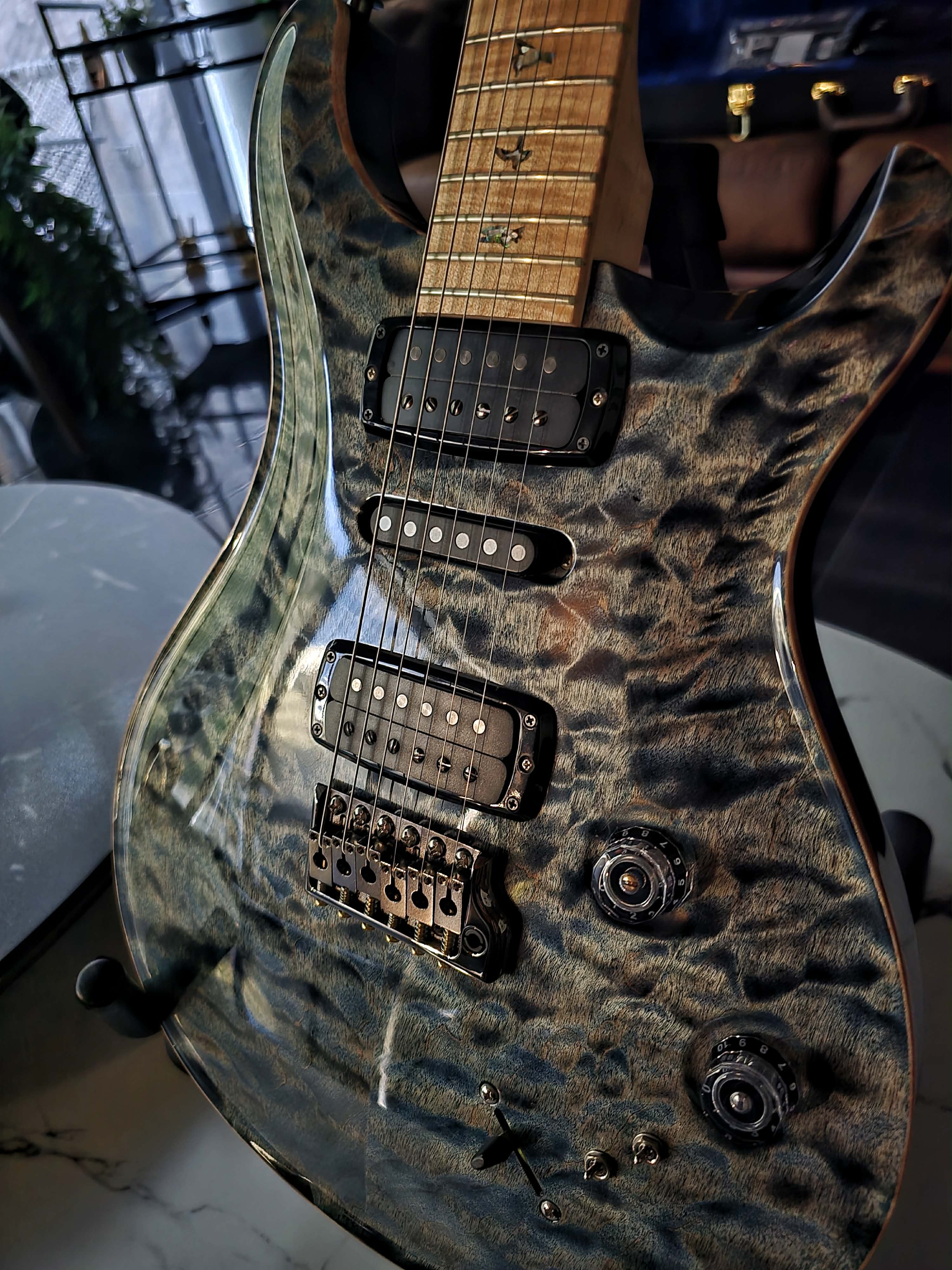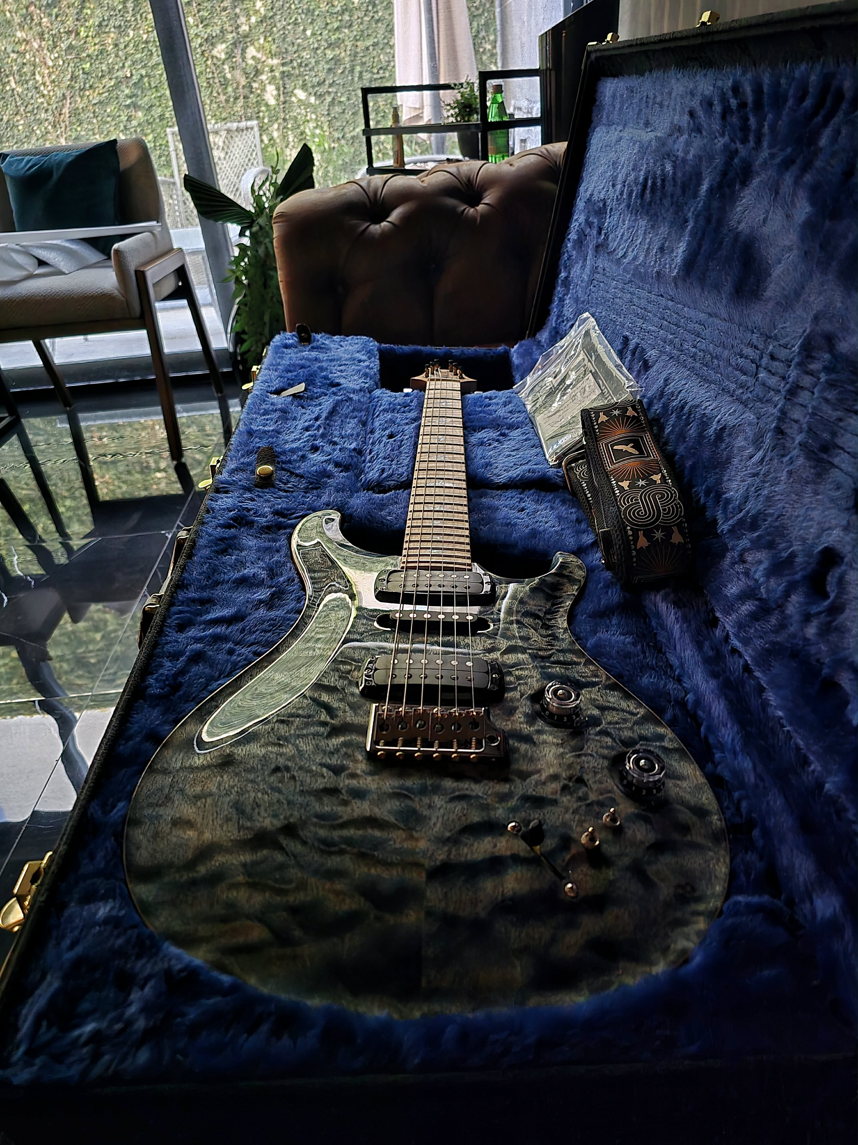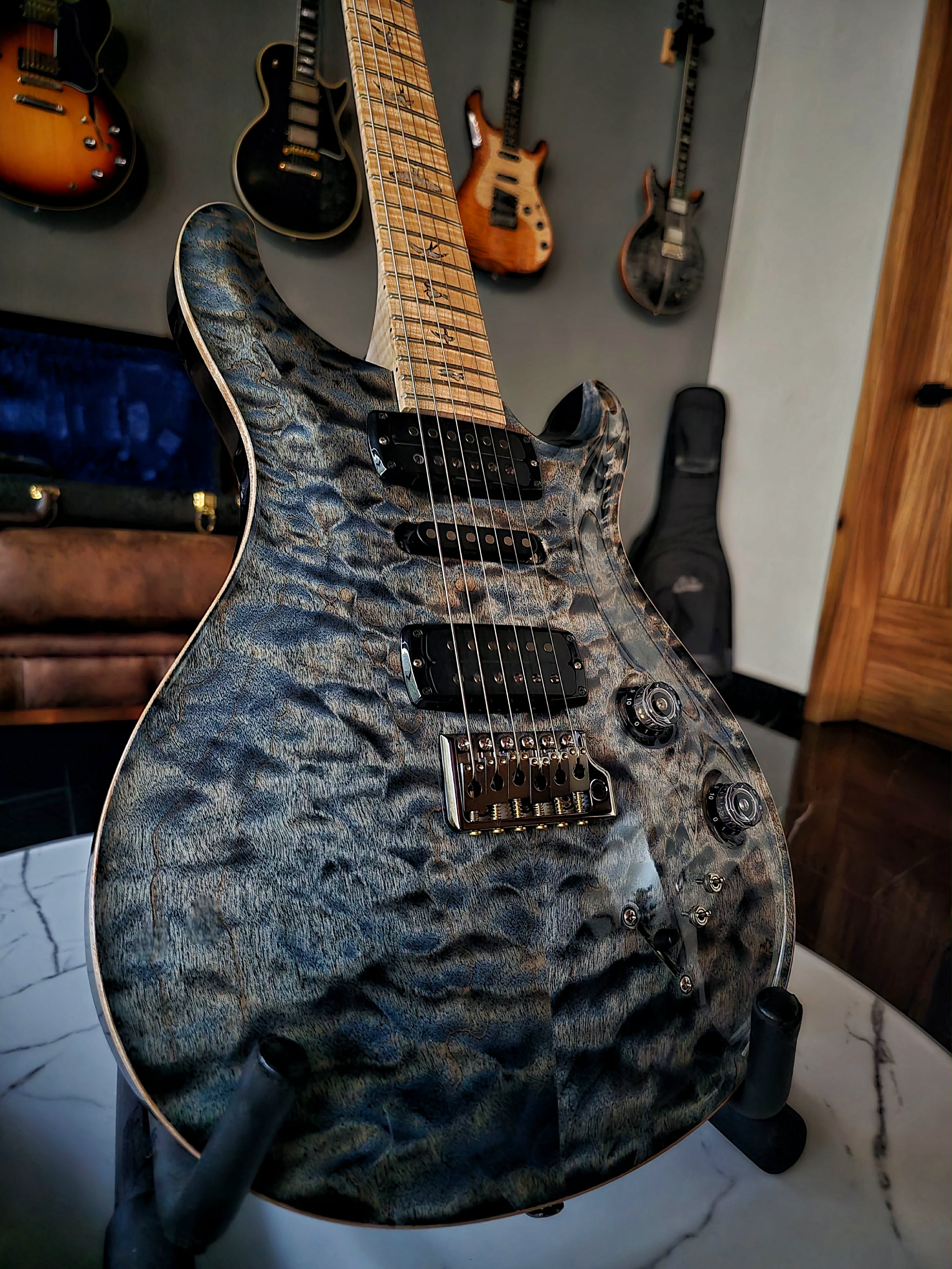 Sé el primero en valorar “PRS Modern Eagle V Wood Library Quilt 10 Top with Flamed Neck and Swamp Ash in Blue Whale 2024”